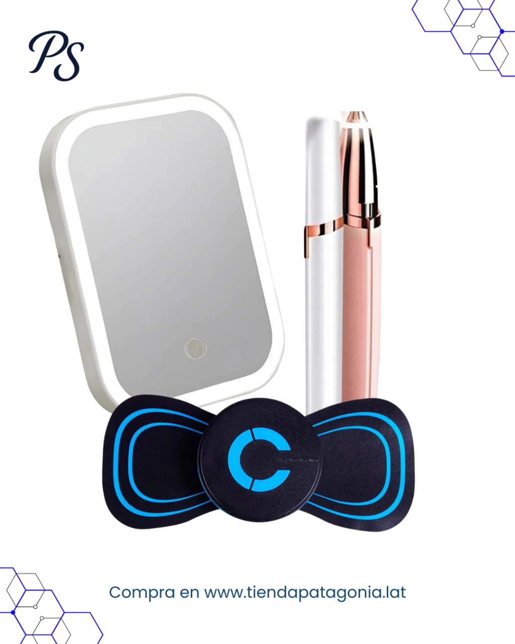 💡 ¿QUÉ INCLUYE EL SET? - Depiladora Facial Recargable: Eficaz y fácil de usar. - Espejo Portátil con Luz LED: Perfecto para maquillarte o retocar tu look en cualquier momento. - Masajeador de REGALO: Disfrutá de un momento de relajación y bienestar.