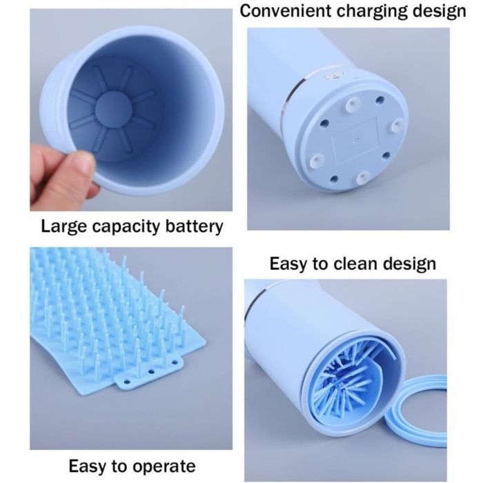 Mantené las patas de tus amigos peludos limpias y sin esfuerzo. Este innovador limpiador funciona con baterías, se desarma fácilmente para lavarlo, y limpia con suavidad para cuidar la piel y el pelaje. Ideal para perros y gatos de todos los tamaños.